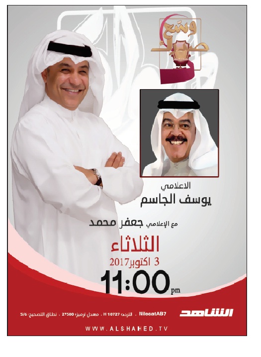 برنامج وسع صدرك مع الإعلامي جعفر محمد يستضيف الاعلامي يوسف الجاسم يوم الثلاثاء 3/10/2017 على قناة الشاهد الساعة 11 مساءً